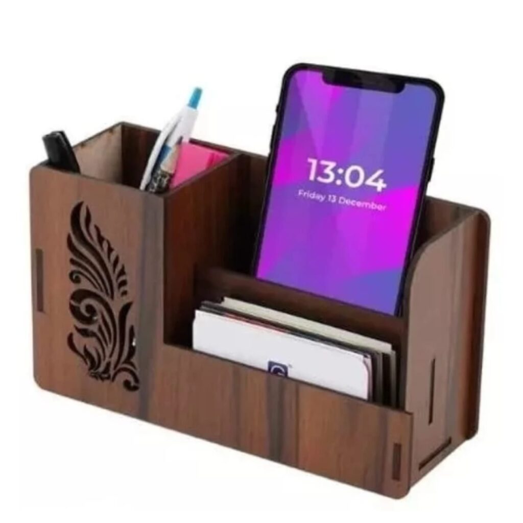 Wooden Pen Stand With Visiting Card & Mobile Holder (4)